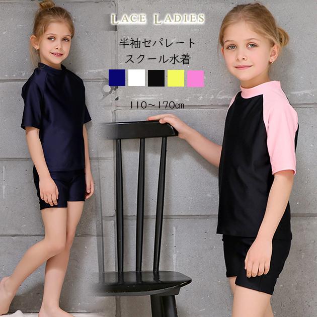 女児 半袖 セパレート スクール水着 ガールズ 女子 ラッシュガード 上下別 ハイネック 女の子 水着 ジュニア 110 1 130 140 150 160 170 Kfs1635 レースレディース 通販 Yahoo ショッピング